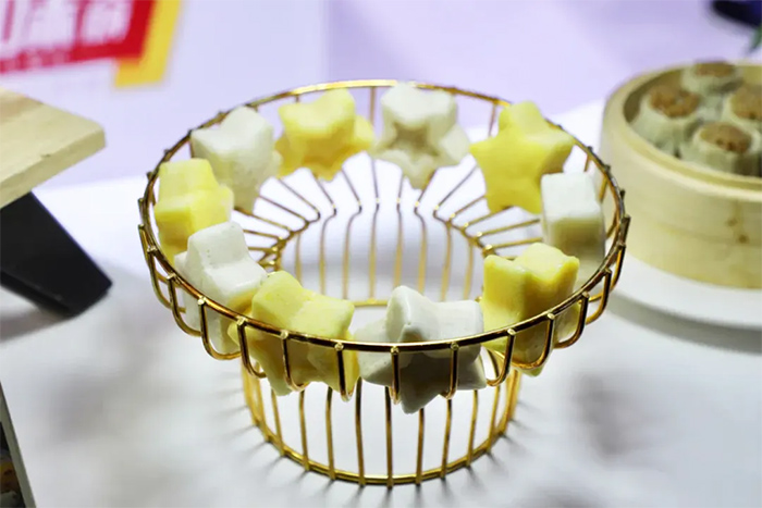 熊仔麻薯蛋糕、油炸糕、鮮蔥油餅、飯團、冷熱雙吃蛋撻等各種美味與實力并存,在千味央廚精心的擺盤設計下,吸引不少經銷商和連鎖餐飲客戶咨詢。